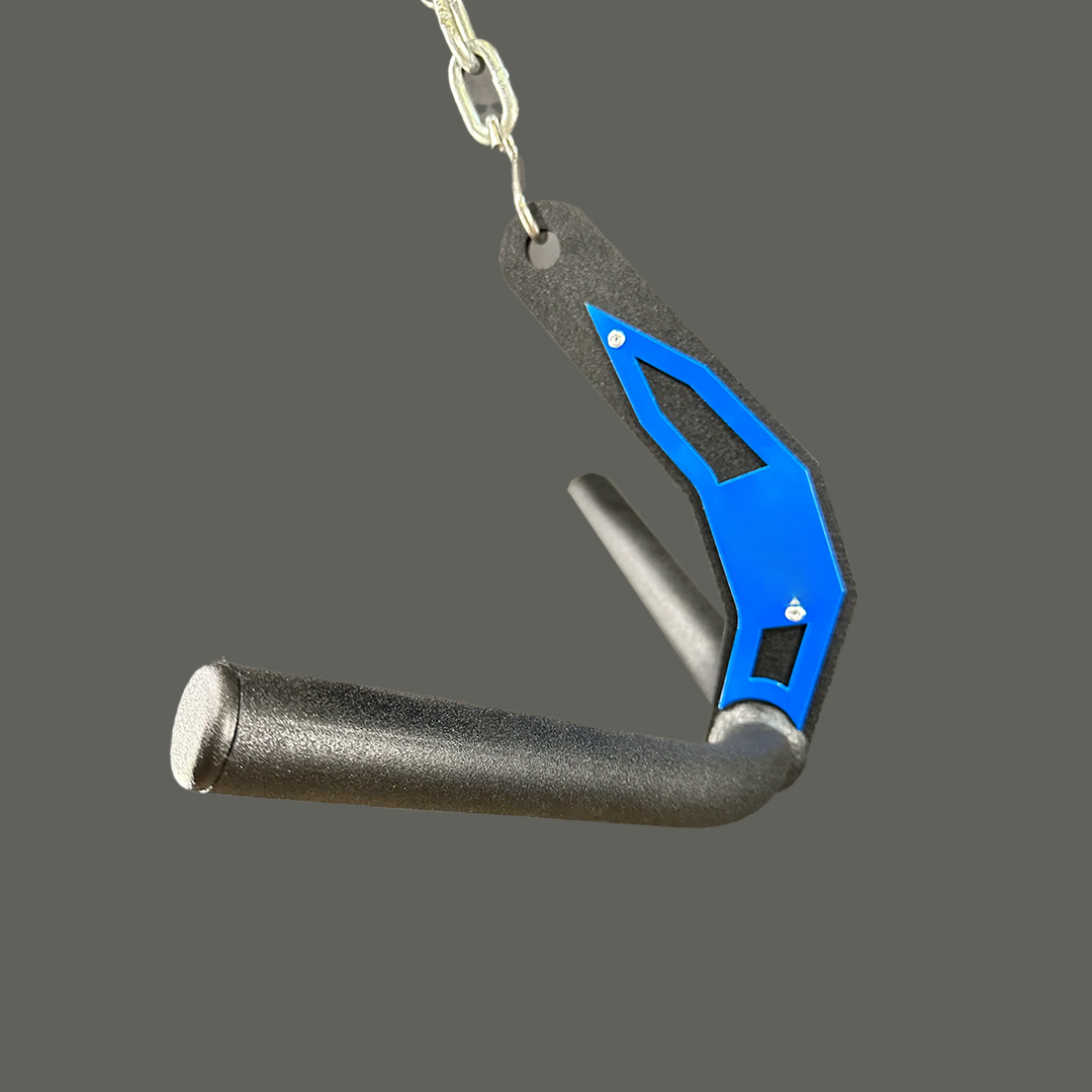 The carefully chosen underhand grip angle helps engage your lats by allowing you to drive your elbows deeper for an unmerciful contraction! This is primarily a pulldown cable handle attachment, but can also be used for rows.