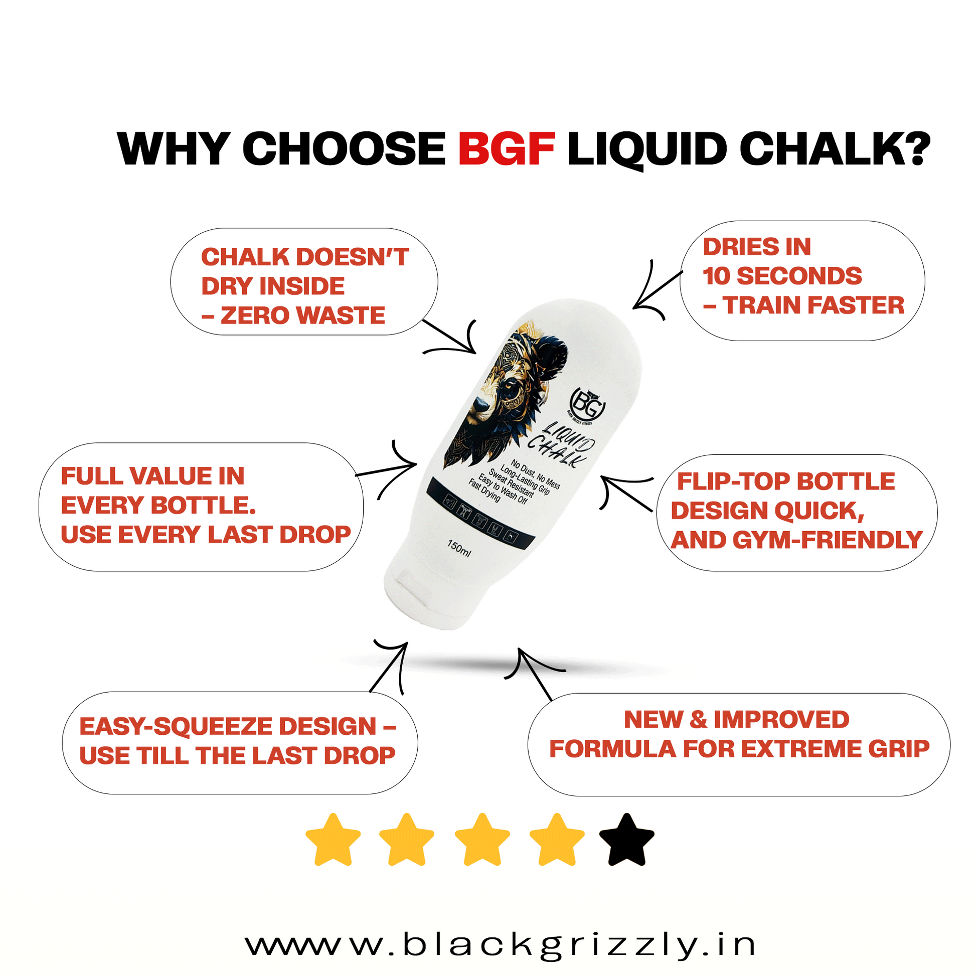 Are you looking for a reliable and mess-free liquid chalk for lifting? Then BLACK GRIZZLY Liquid Chalk is the perfect option for you. It vouches for an enhanced grip, reduced sweat, and minimized skin irritation. This liquid gym chalk lasts 68.7% longer than others without leaving a mess on your clothes and equipment. Plus, with its handy travel bottle, you can easily carry it in your bag.