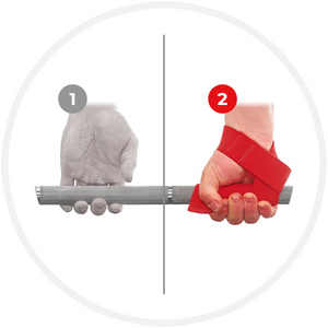 1. WITHOUT STRAPS You struggle Grip fatigue and skin damage keeps you from lifting your best results. Supporting the smaller hand, wrist & forearm muscles which fatigue first!